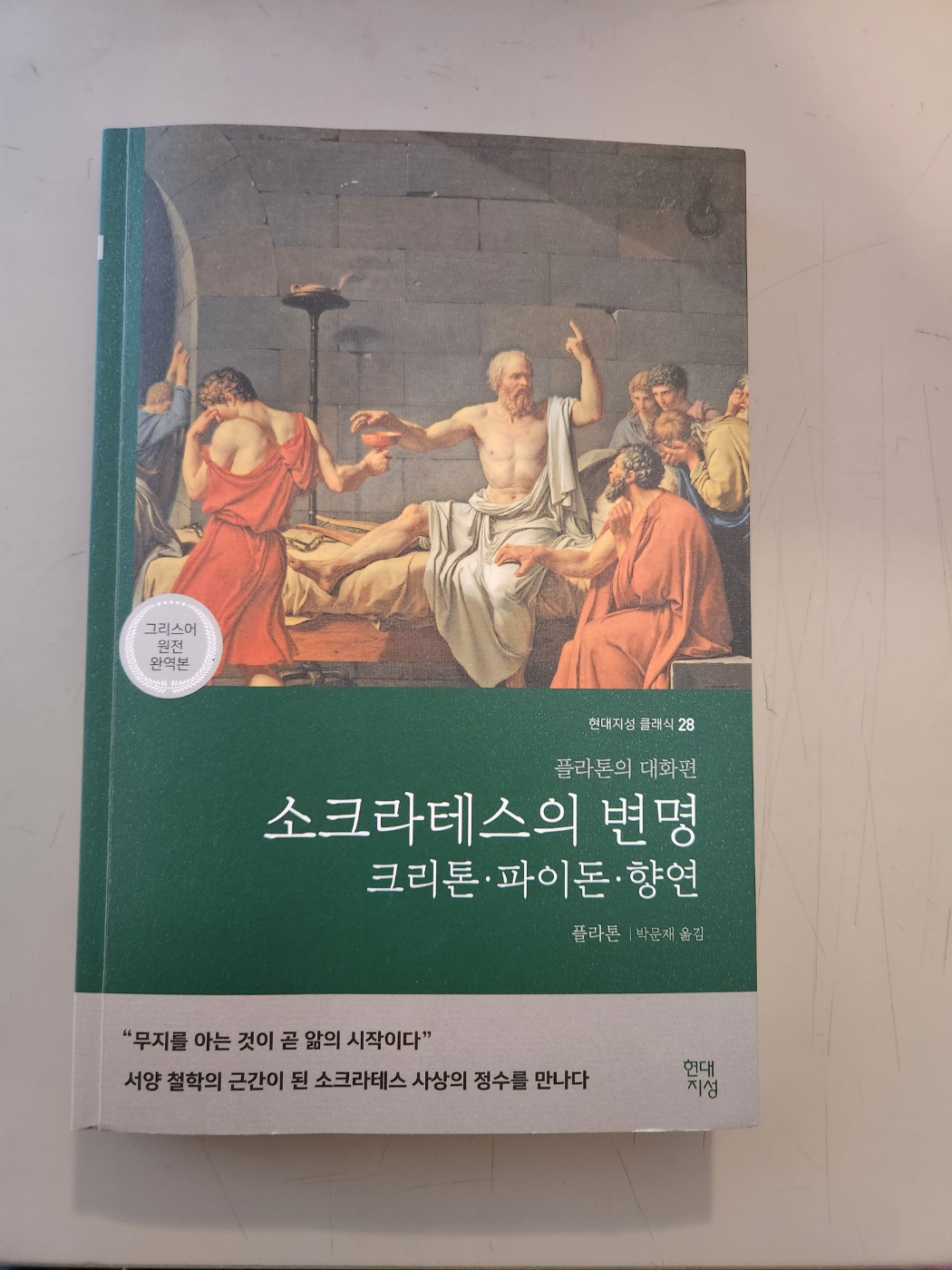 『소크라테스의 변명』은 아테네 법정에서 그가 자신을 변호하는 장면을 담고 있다. 그는 자신에게 내려진 유죄 판결을 받아들이며, 진리를 말하는 것이 설사 죽음을 부르더라도 그 입을 닫을 수는 없다고 말한다. “악을 행하느니 차라리 죽겠다”는 그의 말은 지금의 우리에게도 깊은 울림을 준다.