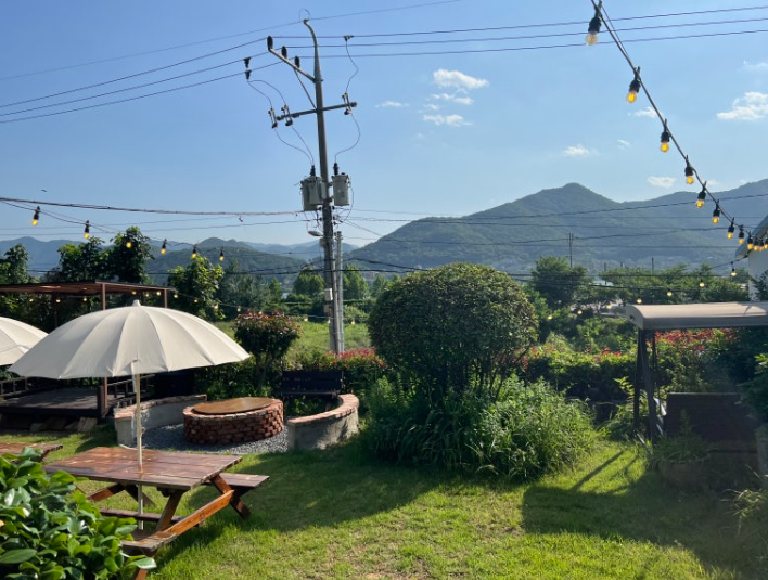 5. 그 외 시설 - 세탁실에는 세탁기와 건조기 워시타워가 설치되어 있으며, 마당에는 스트링조명이 있어 밤 분위기를 더욱 아름답게 해 줍니다.